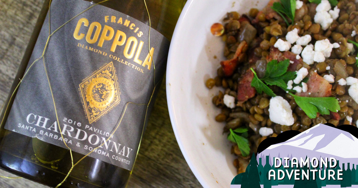 Don’t let the name fool you – this is not a healthy dish. It is, however, what I would classify as healthy-ish, as in it does use all fresh and whole ingredients. But alas the bacon however, make it less than truly healthy in my book. The pound of bacon also makes it incredibly delicious and when combined with the meatiness of the lentils, the tang of the cider and the creaminess of the goat cheese make this an undeniable comfort food. I’d serve this with our Diamond Collection Pavilion Chardonnay , a full-bodied match for this Burgundian inspired meal. For music, this goes really well with “American Utopia,” the new album by one of my musical heroes, David Byrne. Ingredients Method