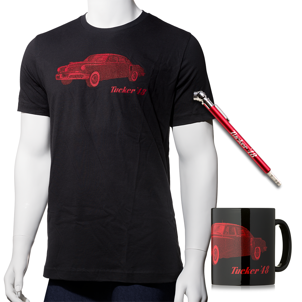 Sip your morning brew in this 20 oz. stoneware coffee Mug with our Vintage Tucker Car Imagery.